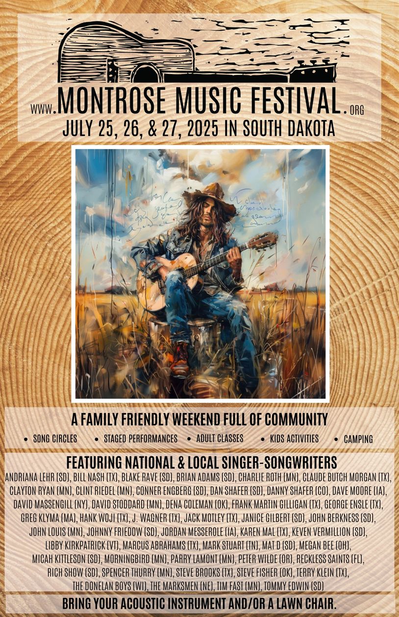 A three day acoustic music and arts festival in the Montrose City Campground with lots of family-centered activities all weekend long. Save the date. More details coming regarding staged performances and the Road to Montrose, which includes special shows before and after our festival.